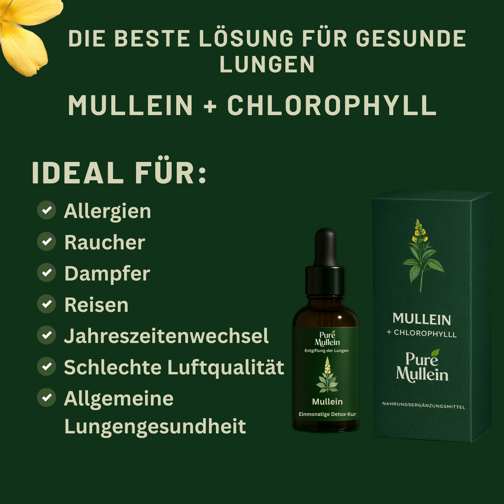 • Hauptinhaltsstoffe: Königskerzen extrakt (10:1) & Chlorophyll